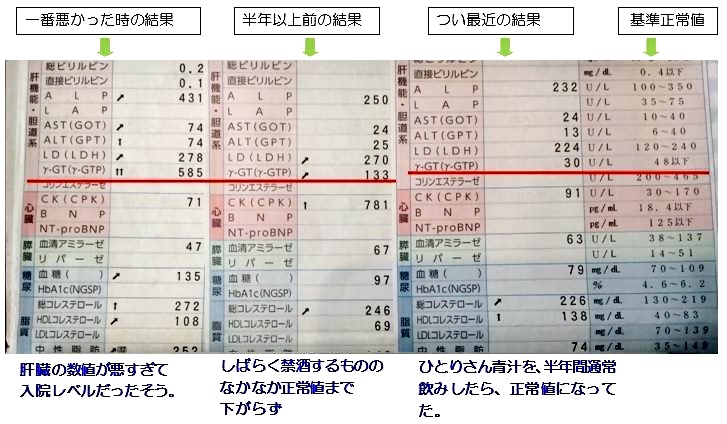ひとりさん青汁を半年間通常飲みしたら、γGDP 30になり正常値へ。