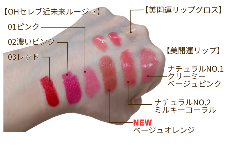原材料名 リンゴ酸ジイソステアリル、トリエチルヘキサノイン、トリイソステアリン酸ポリグリセリルー2、ジカプリン酸ネオペンチルグリコール、パラフィン、水添ポリイソブテン、ポリエチレン、ヘキサ(ヒドロキシステアリン酸/ステアリン酸/ロジン酸)ジペンタエリスリチル、マイクロクリスタリンワックス、プルーン分解物、加水分解シルク、ソメイヨシノ葉エキス、ヒメフクロウエキス、トゲ キリンサイ/ミツイシコンブ/ウスバアオノリエキス、アロエベラ葉エキス、ユズ果実エキス、キャンデリラロウ、BHT、トコフェロール、パルミチン酸エチルヘキシル、トリベヘニン、イソステアリン酸ソルビタン、BG、パルミトイルトリペルチドー1、水、メチルパラベン、(+/ー)参加チタン、水酸化AI、マイカ、赤104(1)、赤202、赤204、黄4,硫酸Ba